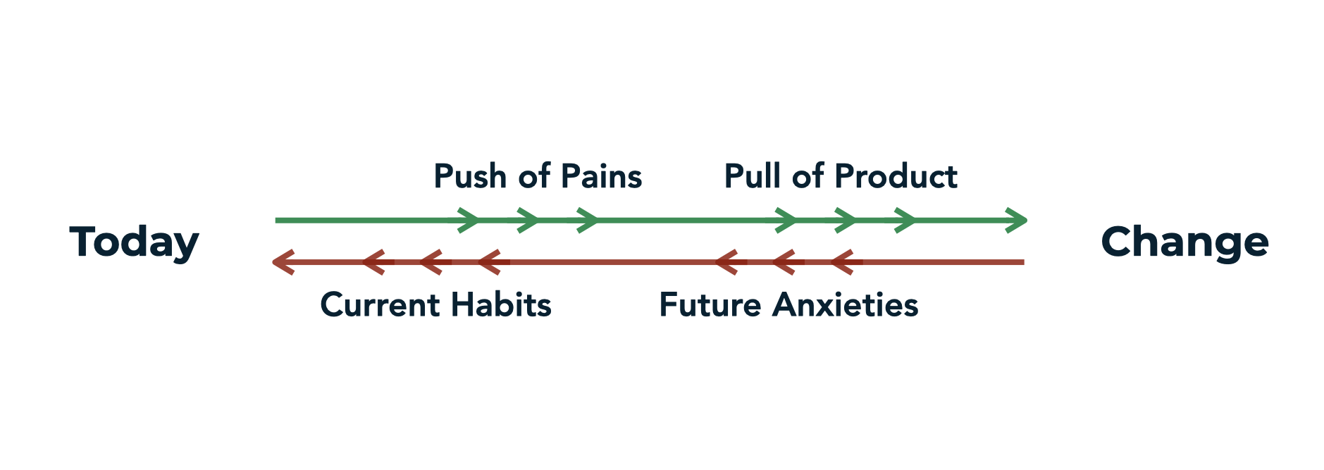 Change = [Push of Pain + Pull of Product] > [Current Habits + Future Anxiety] x 10