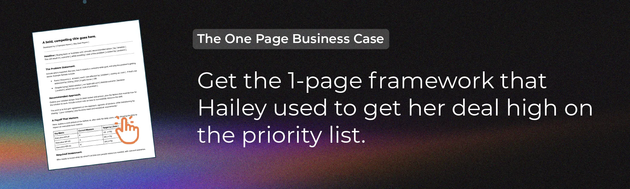 It's less about nuts and bolts, like the economics of the deal, and more about the problem to be solved from the perspective of the customer. Even though I know that, it makes such a difference to have the business case drafted from the early conversations. It shows what you’ve missed and didn’t go deep enough on.