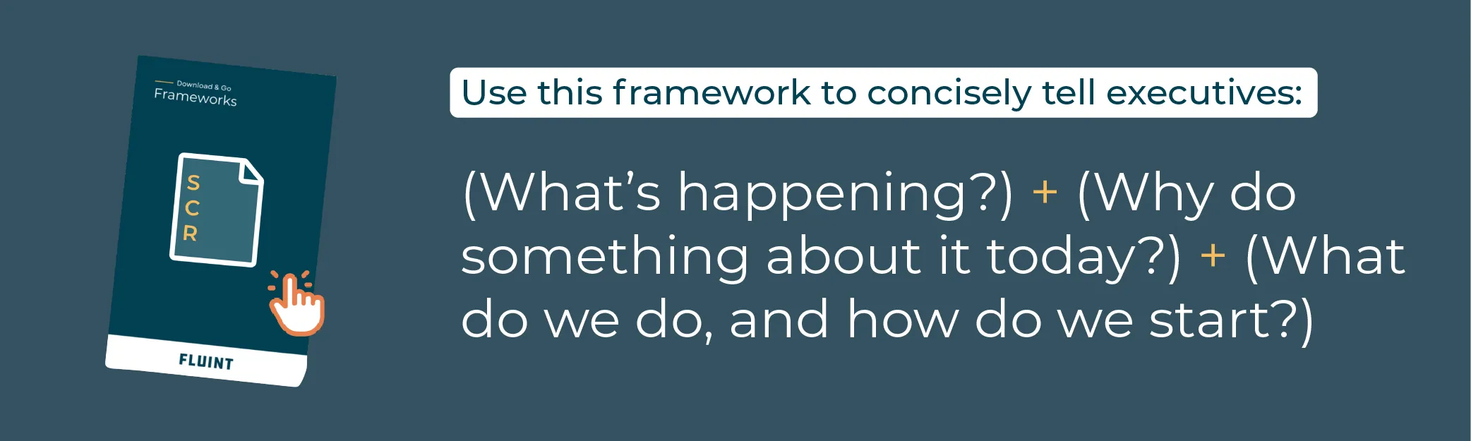 It doesn't take much time. There's different options within Fluint to have a one-page business case or the SCR framework which I've been referring to a lot since it's has more of a consultative feel, which is probably the one I like the most to start.
