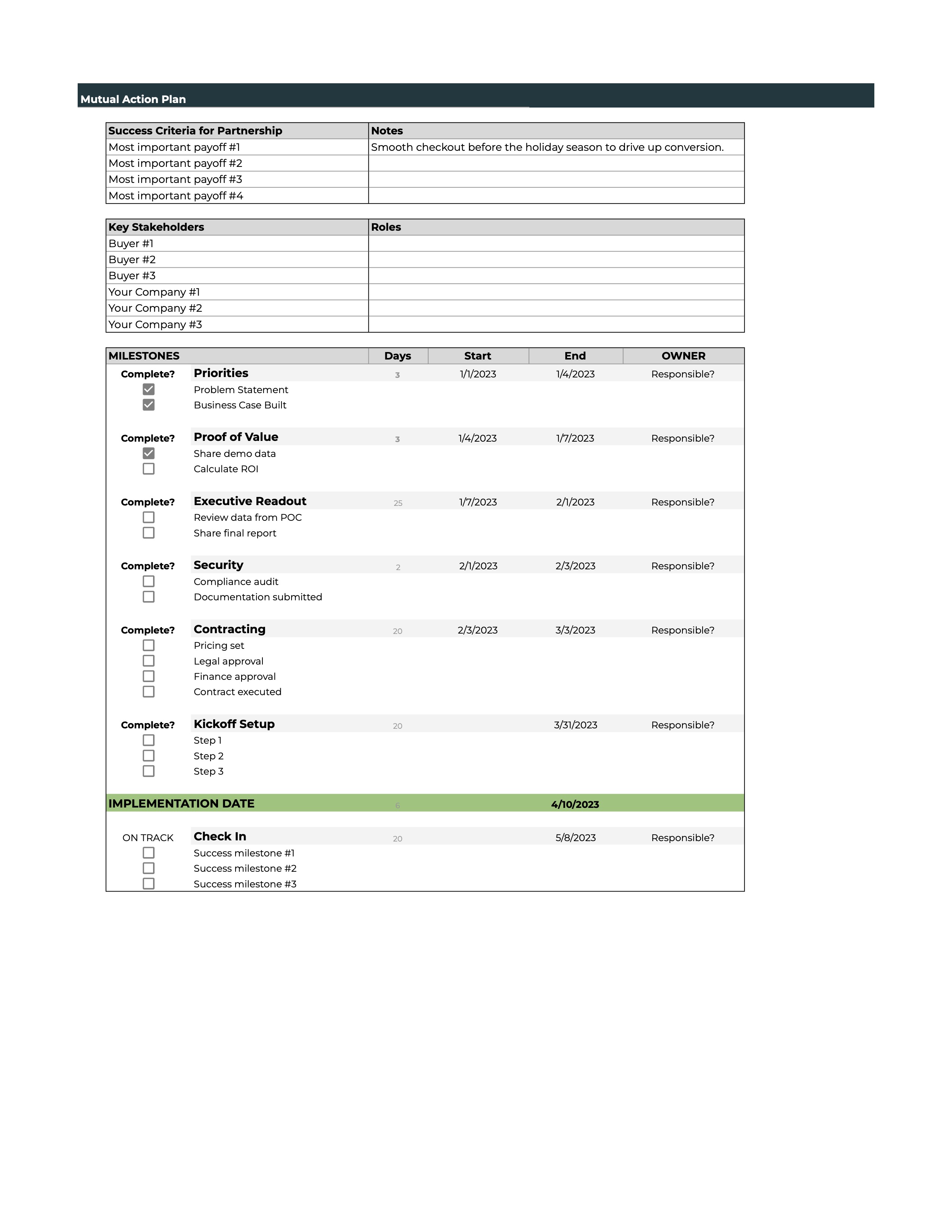 - Valuable: anchored in the customer’s outcomes, not just the deal’s close date.