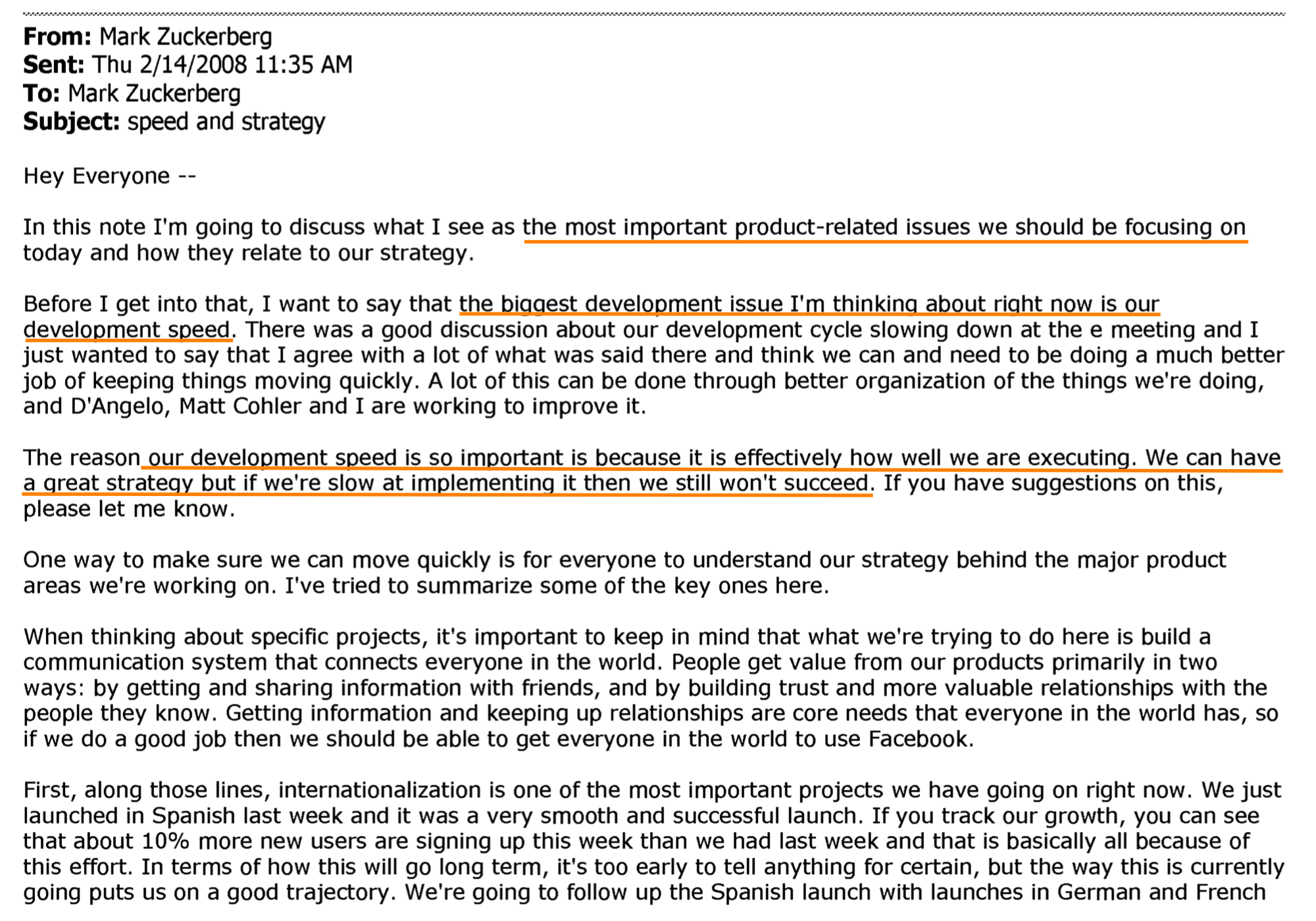 Just to hit this point of selling priorities home, look at the way Zuckerberg concludes an insanely long email. (I pasted the whole thing into wordcounter.net and found it was 4,262 words long — 2-3X the average blog post, all written with his thumbs.)