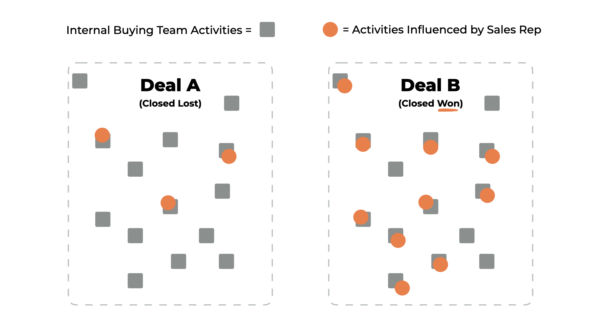 While there’s some overlap (meetings on your calendar, activities in a Mutual Action Plan), your sales activities represent a fraction of the internal sales process your buyers are leading.