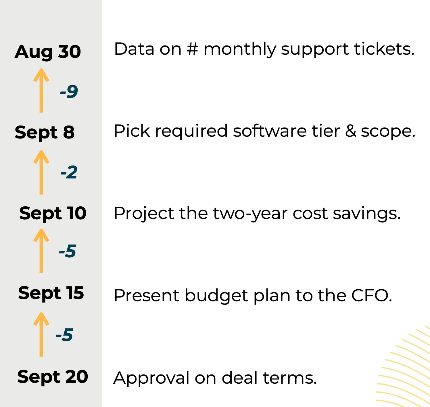 Buyer: “So a new one I’ve been seeing is like a project plan. Where we lay out the steps for the purchase. And it's helpful for me to see what’s involved from their perspective, because I’m going to match up the level of effort I’m seeing they need, to how important I think this project is.