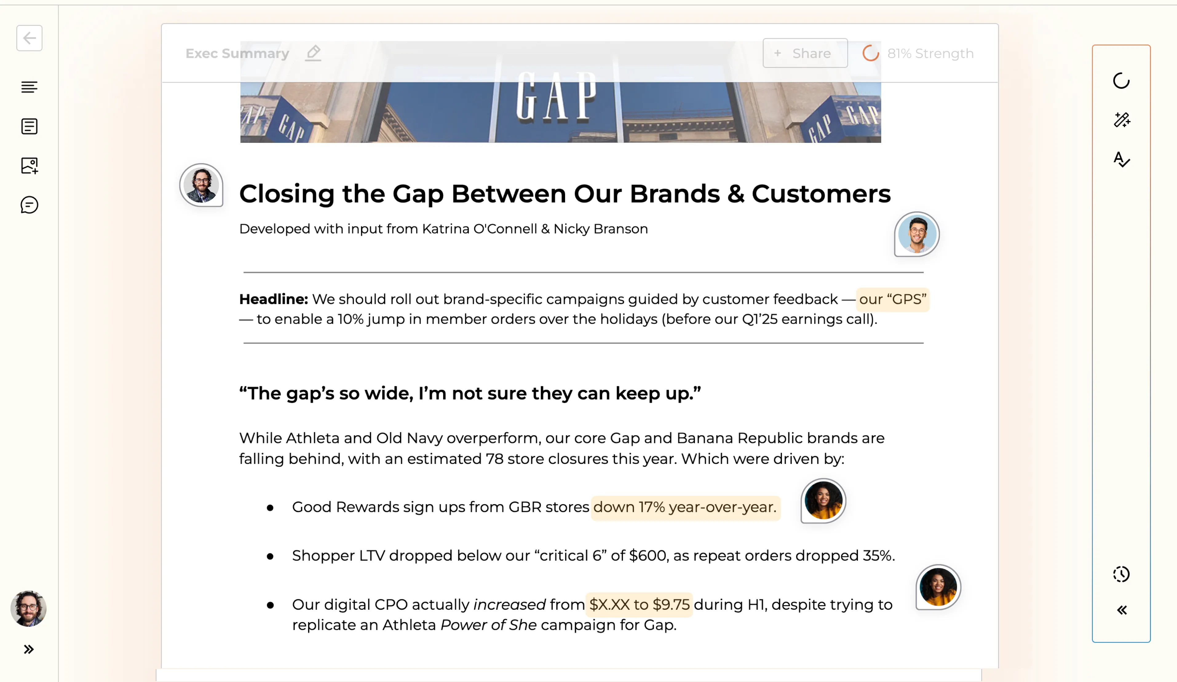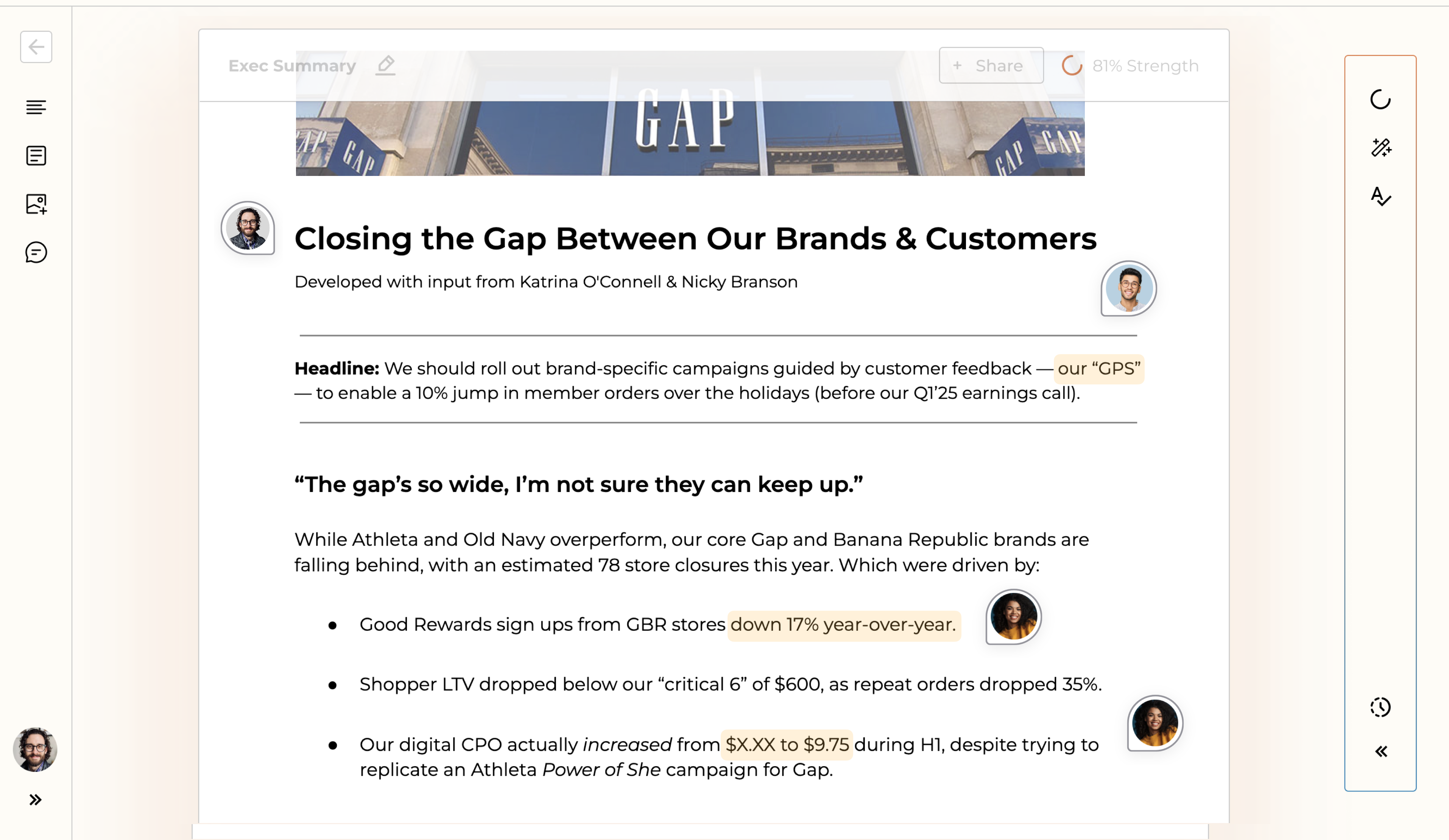 - A POV on the fact certain brands in the Gap portfolio are underperforming, with detailed numbers from inside the buying team.