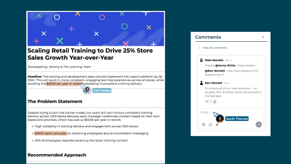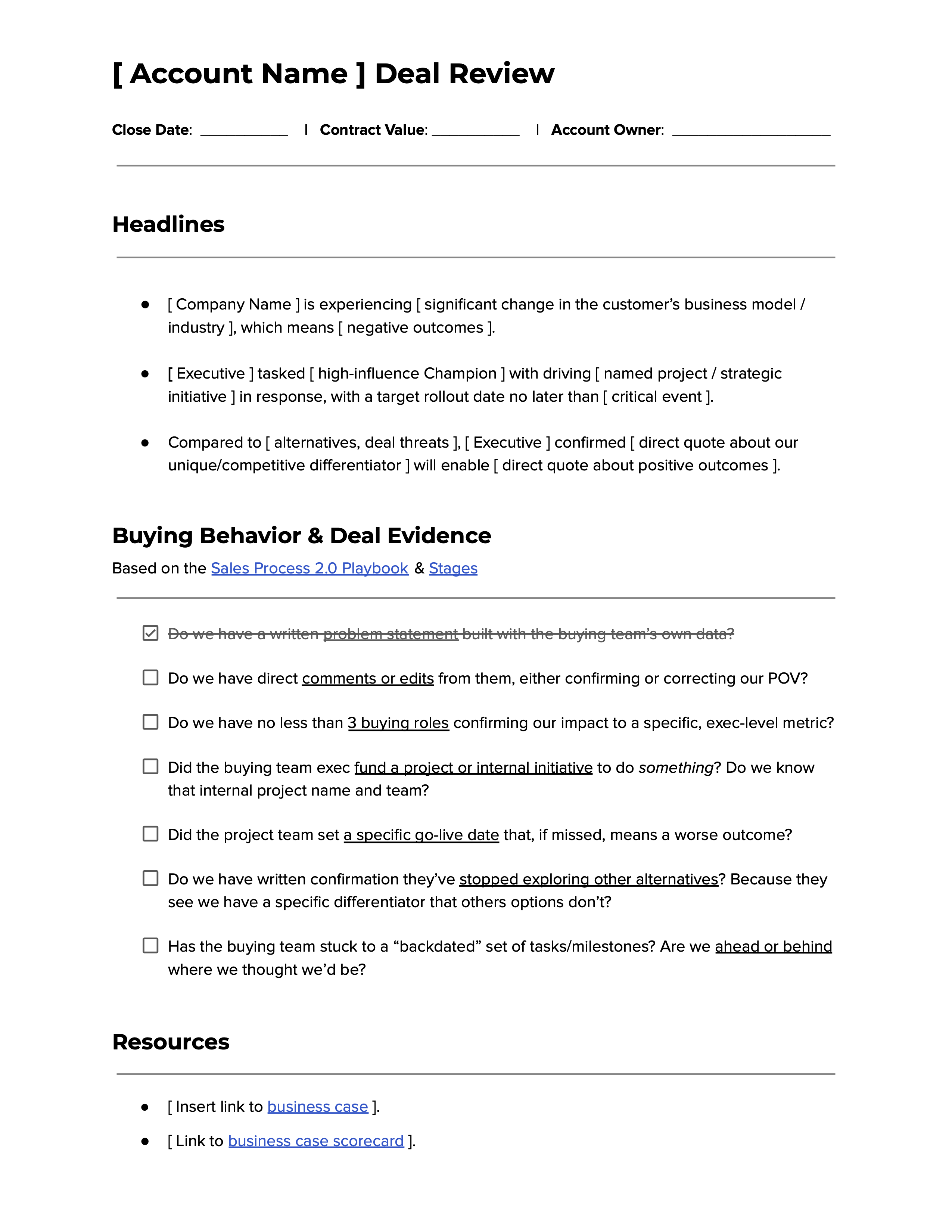 Assuming you’ve actually documented the narrative behind your deal — vs. recycling the same template decks and case studies — then, deal reviews are radically simplified. Sales leaders, you’re looking for a couple points: