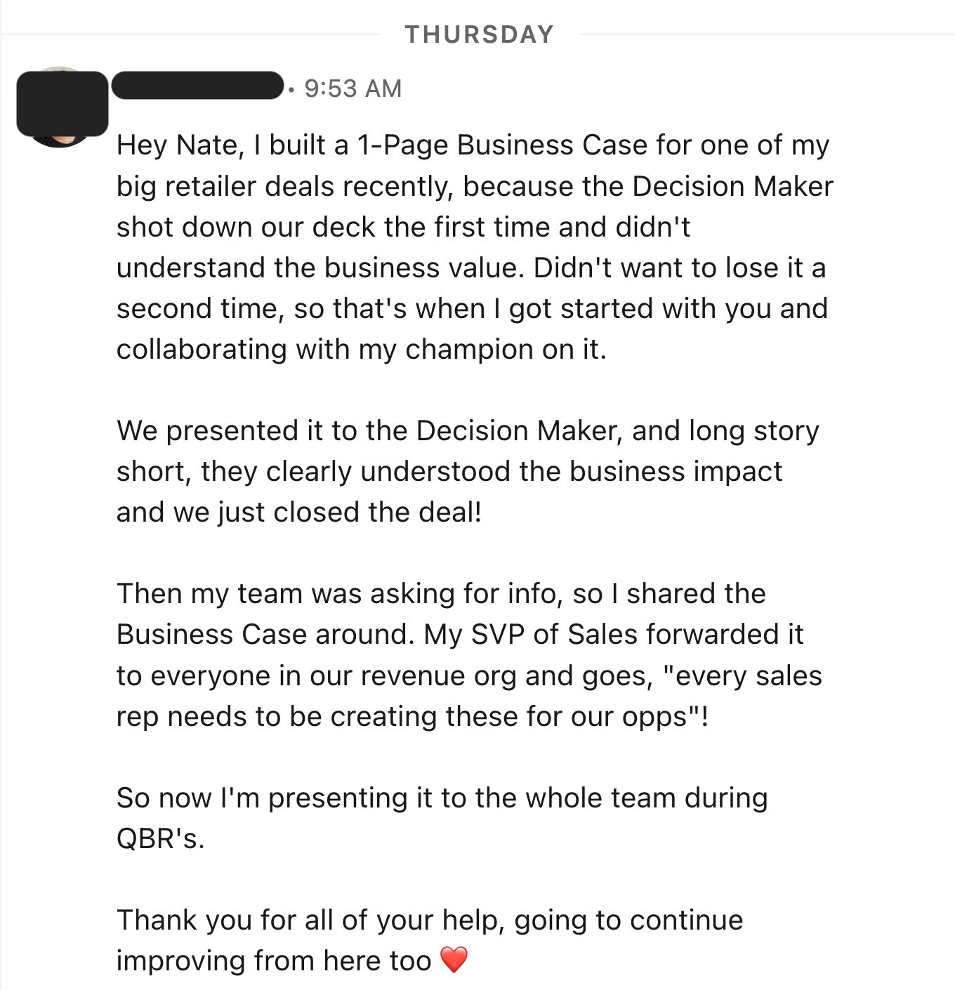 Related, here’s a message from an AE who changed his company’s sales process:
