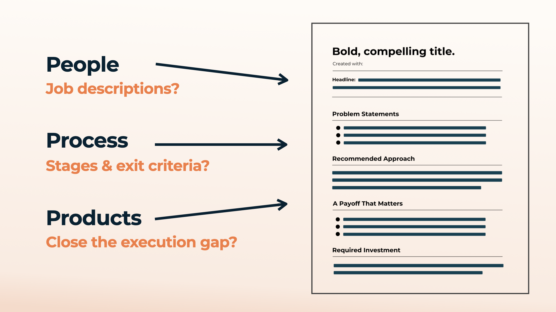 - (Discovery) Are we finding a compelling reason to change? How much data vs. fluff is on the page? Did we get past products and process, to priorities and customer projects?