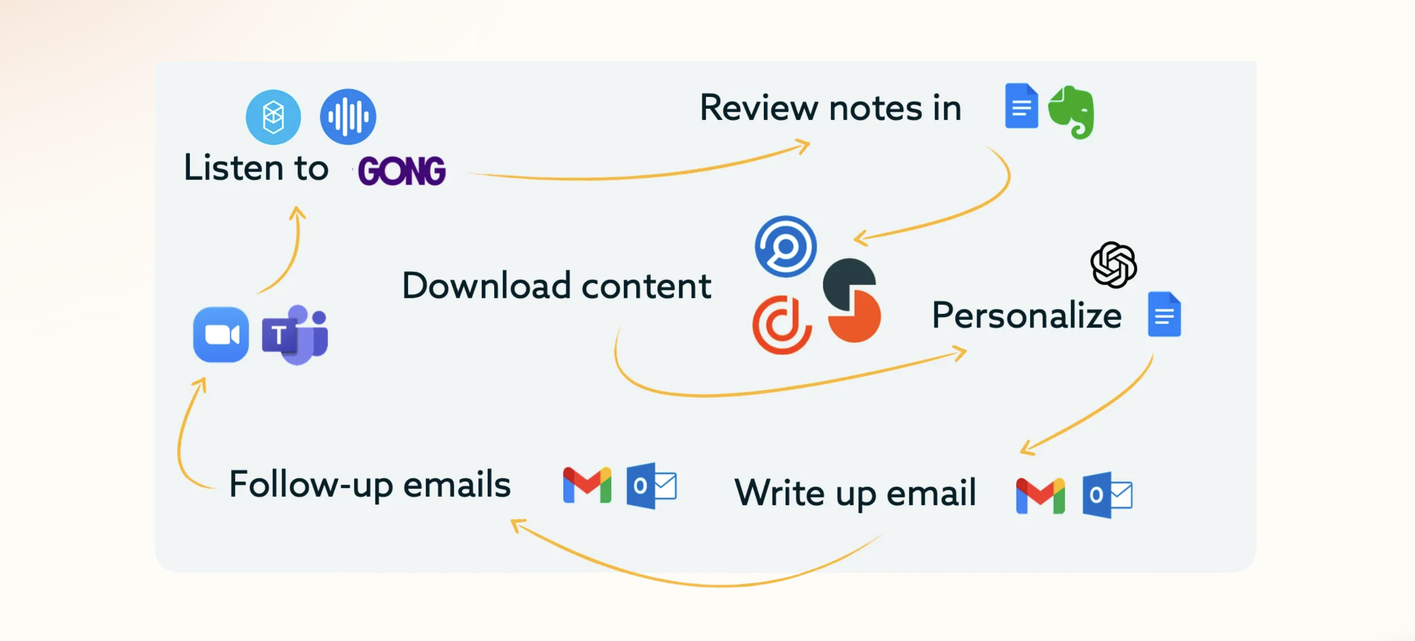Which means that even with lots of tools and spend in the stack already, the way a rep operationalizes Sales Process 2.0 looks something like this: