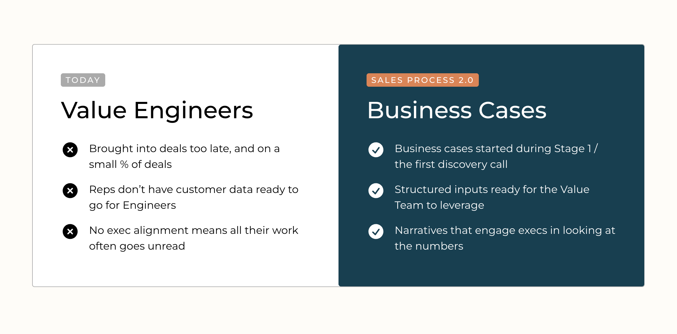 - Value Engineers: narratives built early in a deal to bring meaning to ROI.