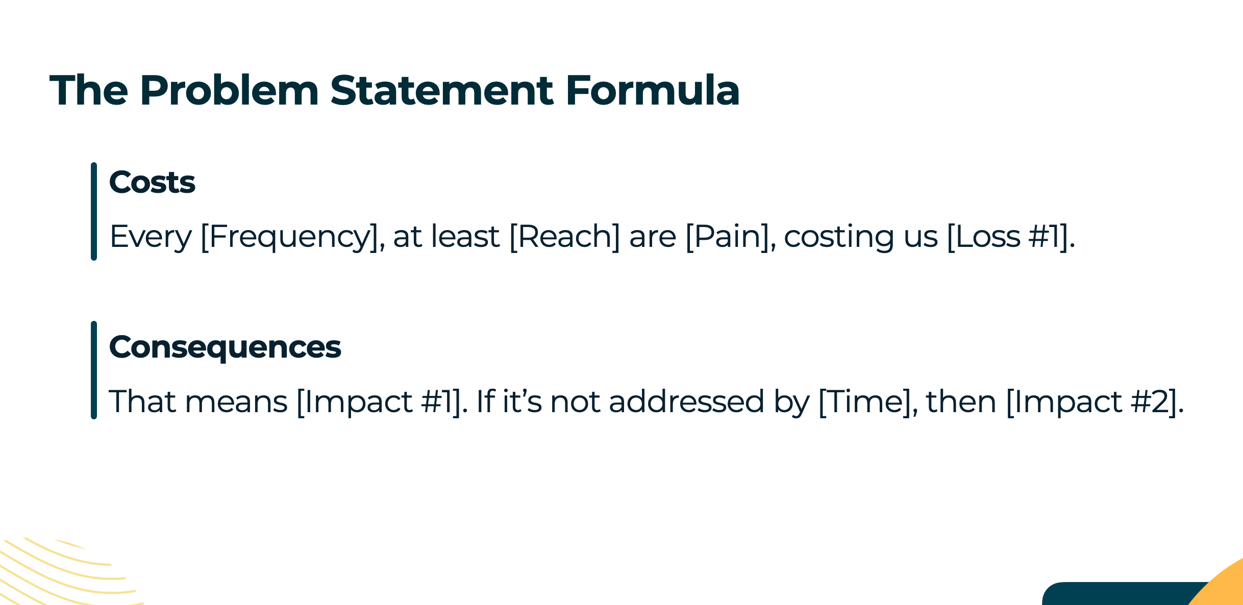 To make the loss compelling, be specific. And to be specific, quantify the loss your buyerâs problems are creating whenever possible. A simple way to quantify loss is: