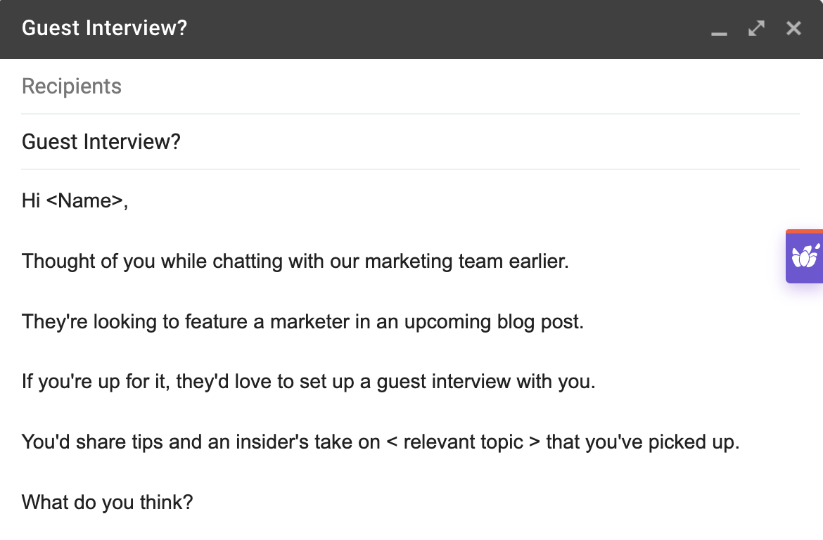 Let's continue with our example of selling an SEO content tool, and working with a champion, Morgan the Marketing Manager. Here's how I might write an email to grab her CMO's attention, in just 100 words.