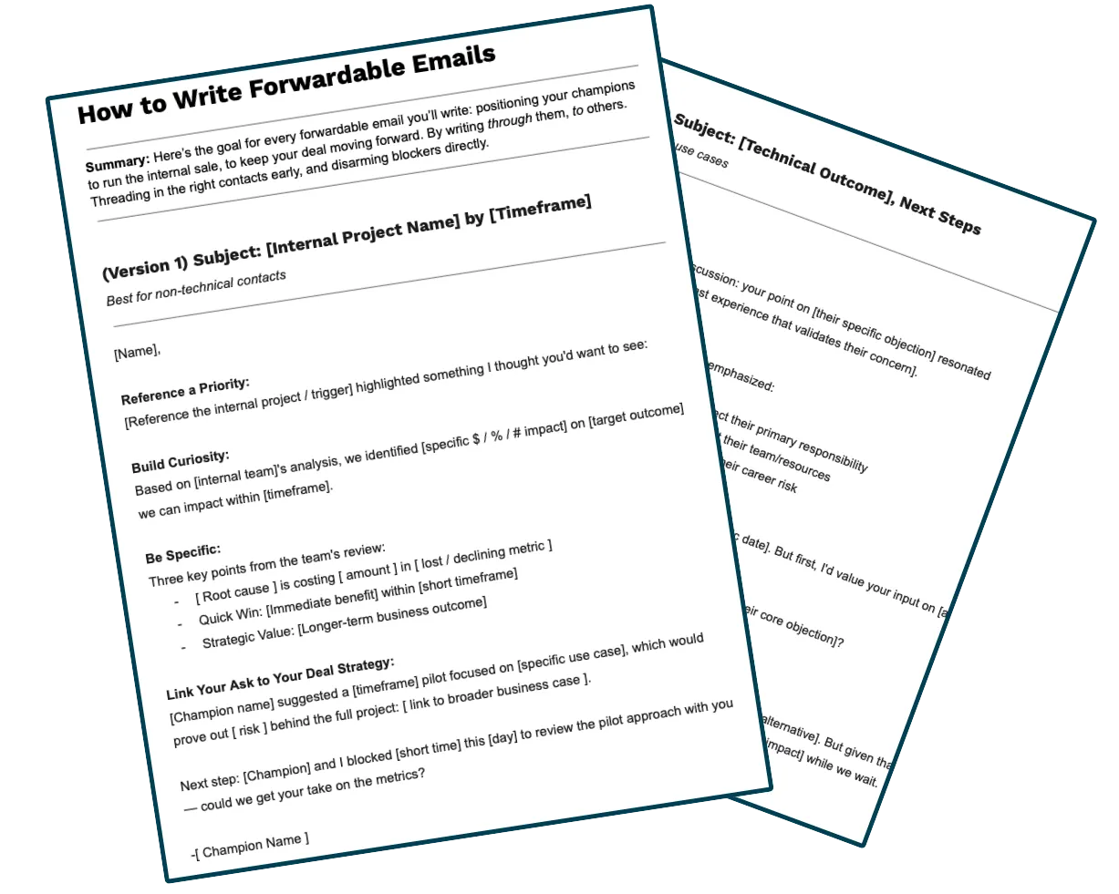 These “forwardable” emails are built for one job: helping your internal champion carry your message up and across the org. You’ll learn how to: