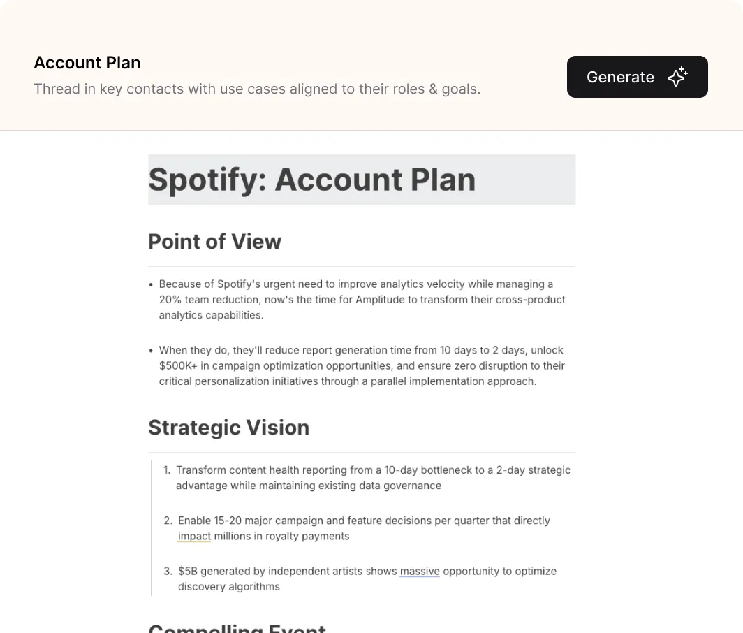 So Fluint’s focused on a different approach: influencing the 90% of buying conversations sellers aren’t in the room for. By writing account-based content like business cases, account plans, and mutual action plans based on the actual discovery you’ve done, stored in your call recordings, email threads, and notes.